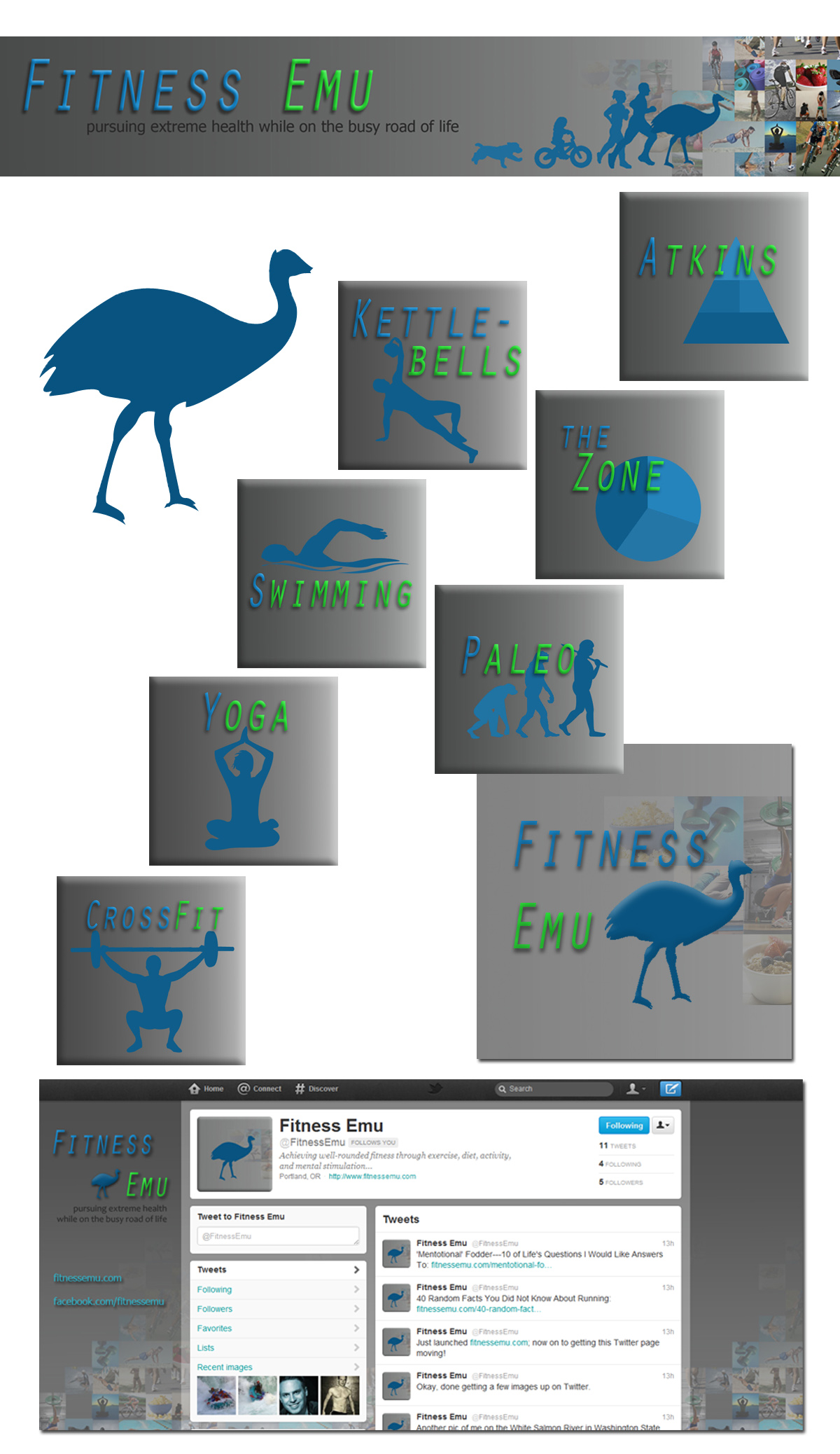 On this project I worked with an experienced blogger who was looking for a more well rounded and consistent look throughout his site as well as on the many social media sites. Together we worked towards a complete visual presentation of all aspect of the Emu that include: blog banner, sub-category buttons, blog avatar image, twitter background image, facebook fan page image, and I even had a little input on that super catchy name…